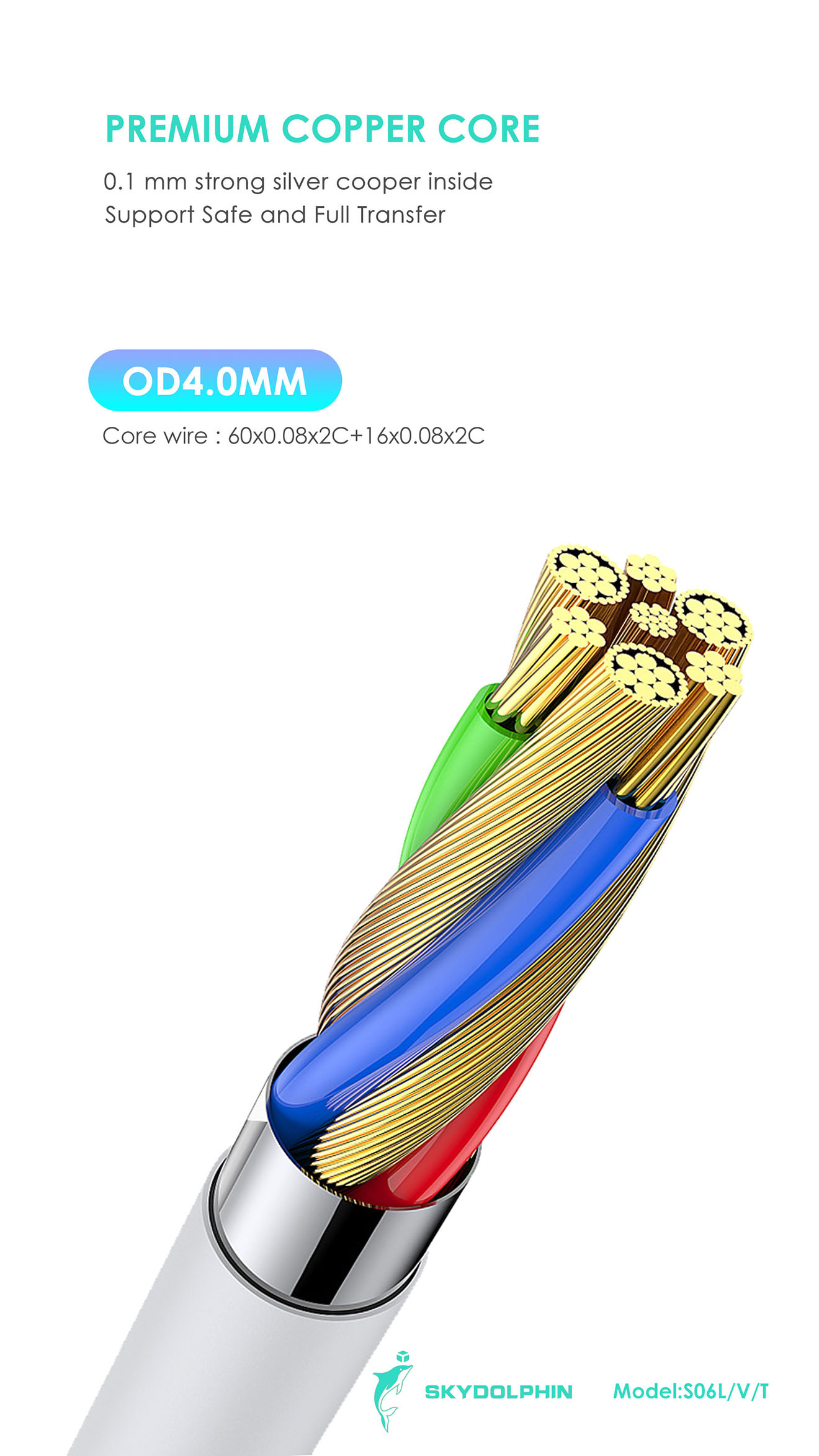 ★Size: OD4.0x1000mm ★Weight: 26g ★Color: black line with black shell, white line with silver shell ★Material: TPE high elastic wire, aluminum shell with mesh tail sleeve formed at both ends ★Current: Actual 2.4A standard 3A Max ★