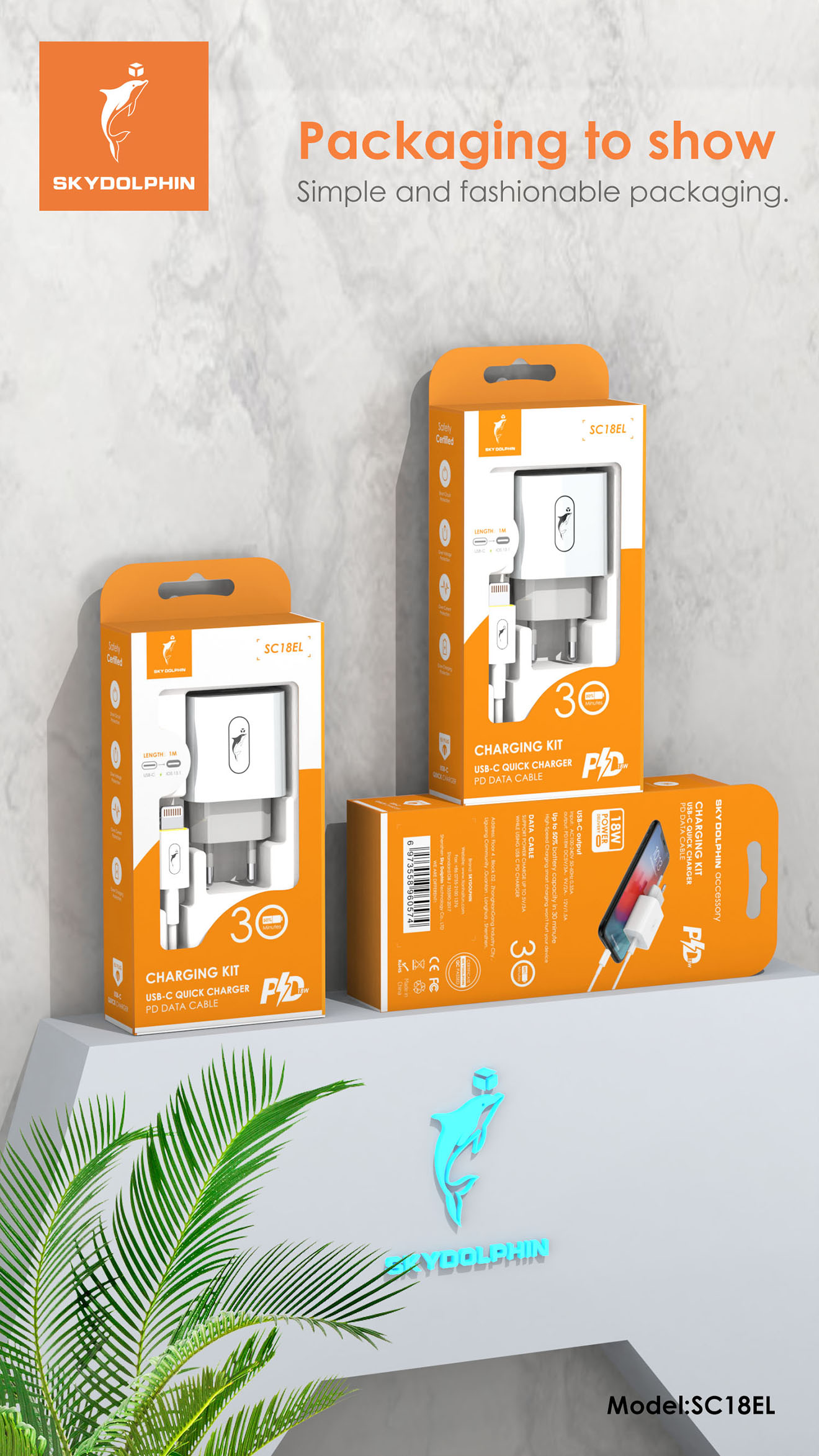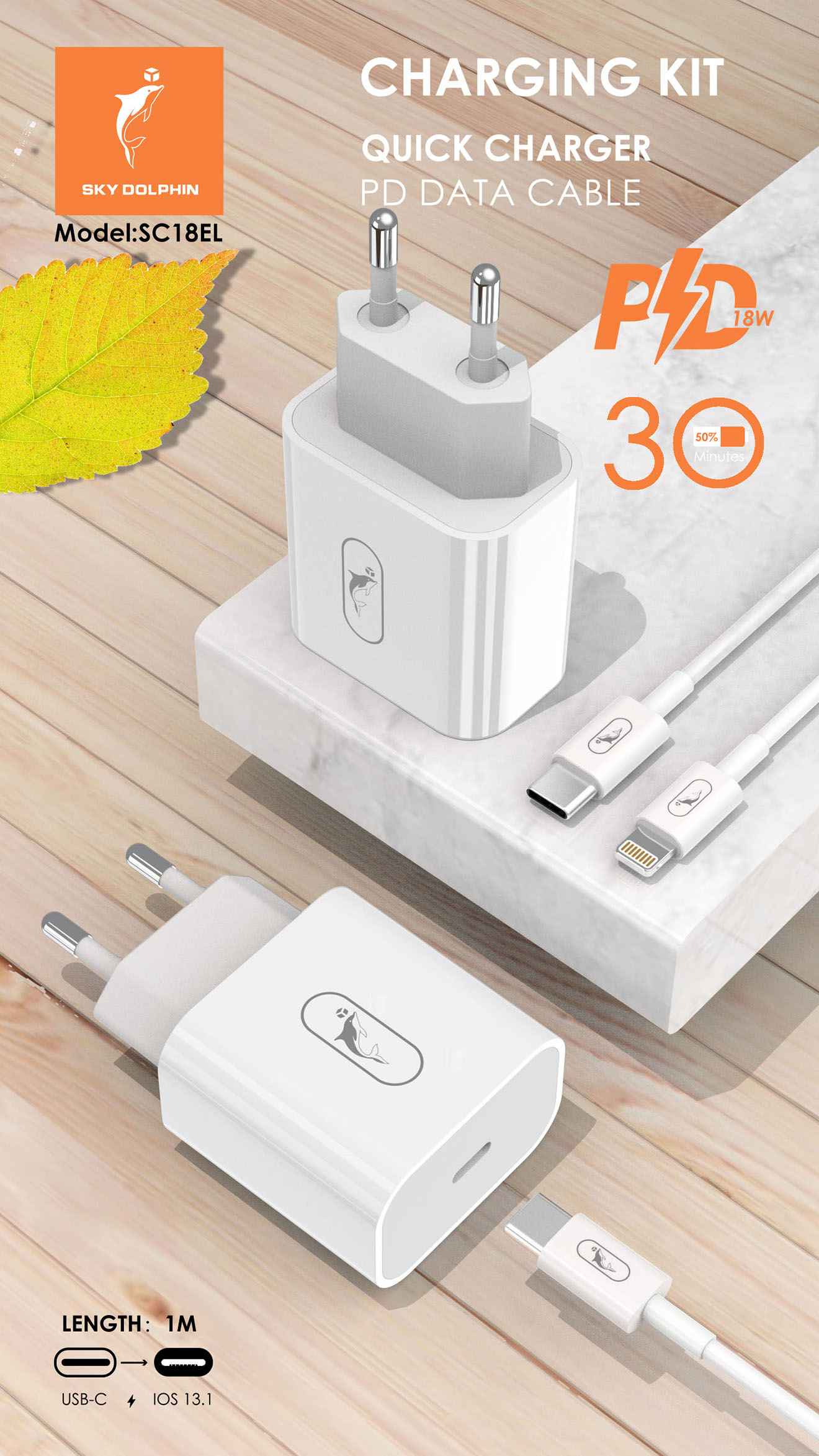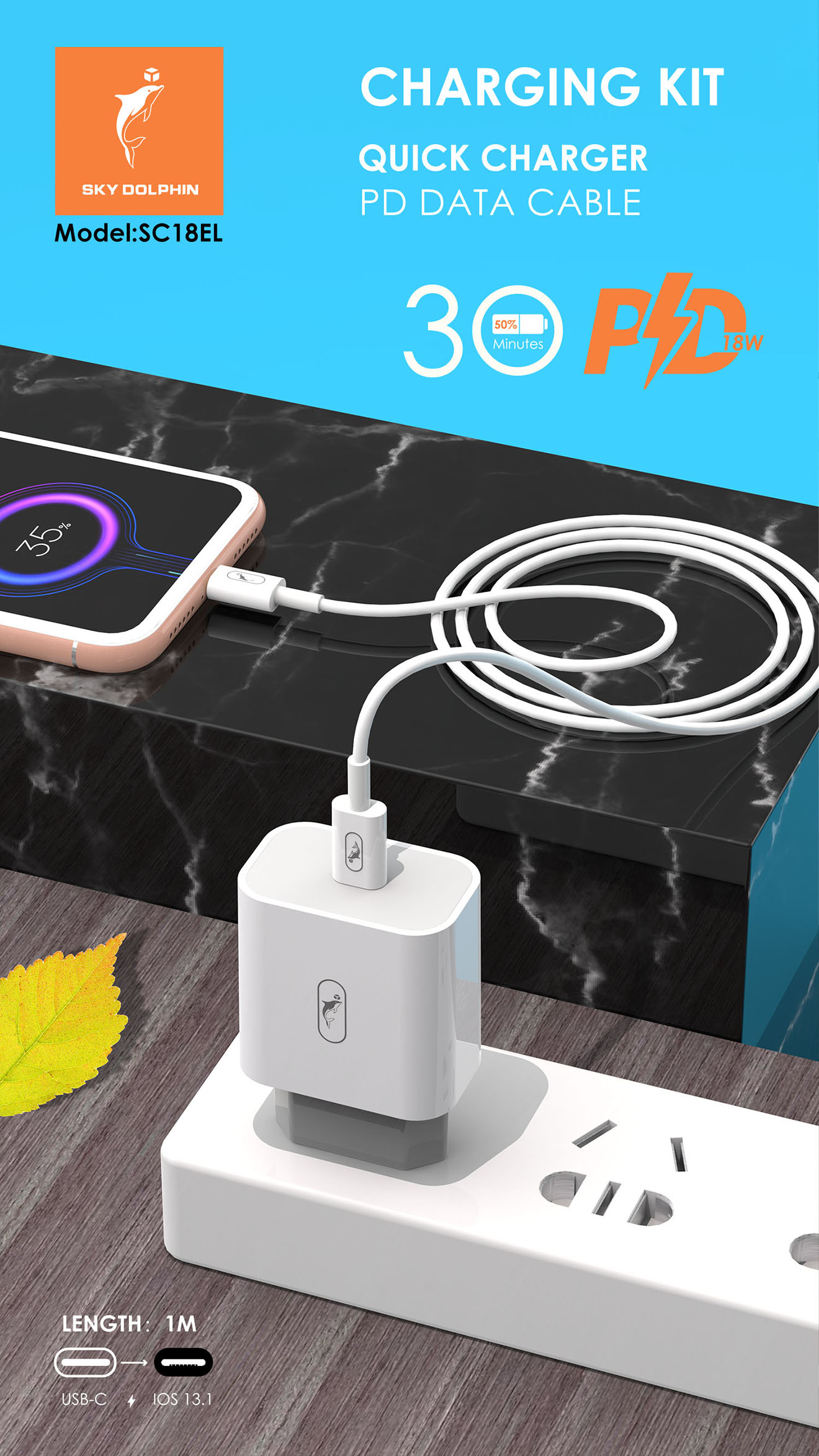 PDcharger set . SC18E EU charger with S57T cable 1.Output: DC5V/3.0A , 9V/2.0A , 12V/1.5A ,up to 18W. 2.Cable:48x0.08x2c+10x0.08x2c 3.Transmission power:18W 4.Plug Type: EU Plug+0Type-c to Type-c cable